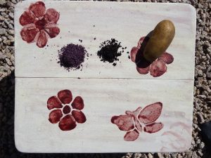Je ne voulais pas aller jusqu’au magasin de bricolage pour trouver un petit pot de peinture très cher, plein de substances douteuses, alors j’ai testé la fameuse peinture à la pomme de terre et au lait….Voici comment j’ai procédé :